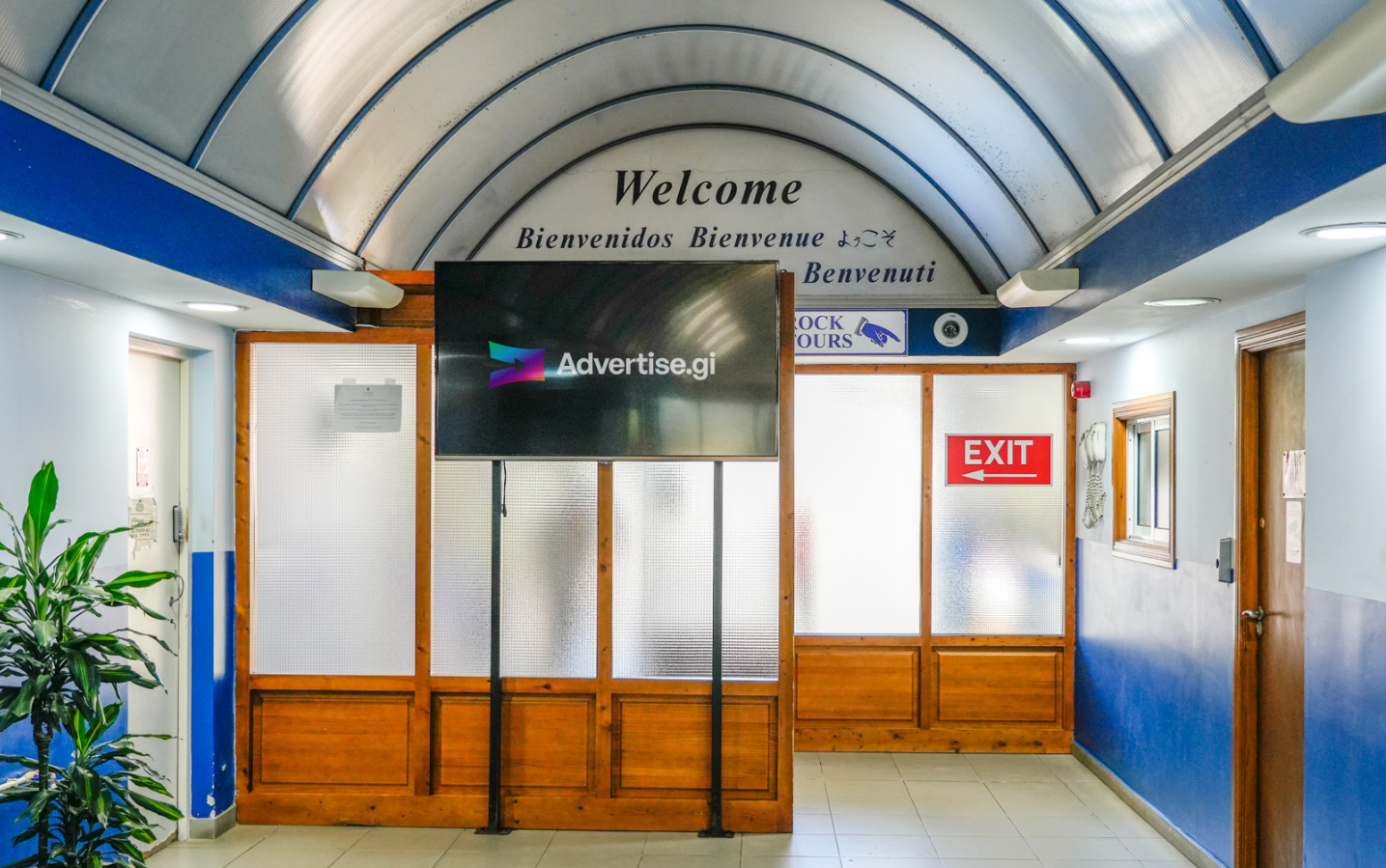 A major hub for tourist groups and independent travelers. The screen provides information and advertisements to visitors as they explore Gibraltar.